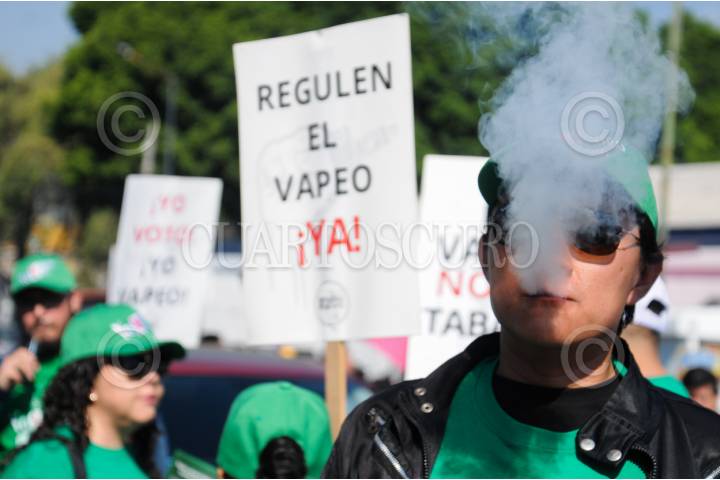 CIUDAD DE MÉXICO, 12MARZO2024.- Usuarios de vapeadores protestaron afuera de la Cámara de Diputados exigiendo la regulación de estos objetos y que no los prohíban. FOTO: DANIEL AUGUSTO /CUARTOSCURO.COM