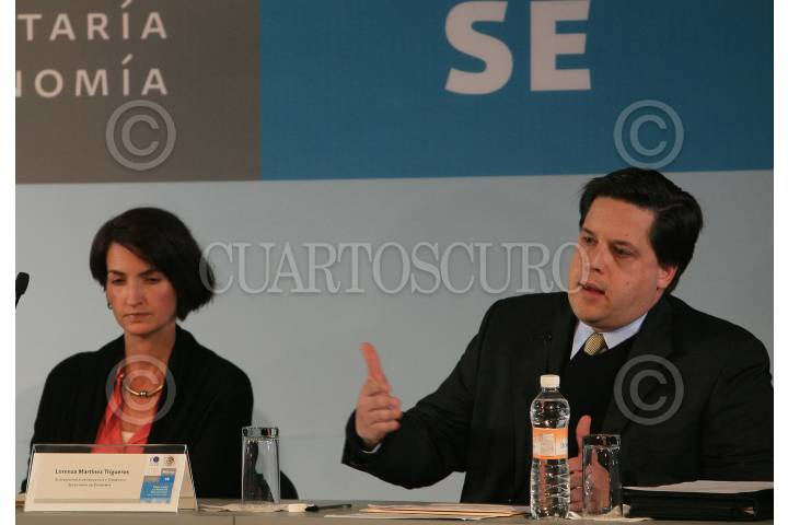 MÉXICO, D.F., 12ENERO2010.- Lorenza Martínez Trigueros, subsecretaria de Industria y Comercio SE y Alfredo Gutiérrez Ortiz Mena, jefe de sistema de Administración Tributaria, durante su participación en el foro sobre La Reforma Regulatoria que se organizó la Secretaría de Economía. FOTO: MOISÉS PABLO/CUARTOSCURO.COM