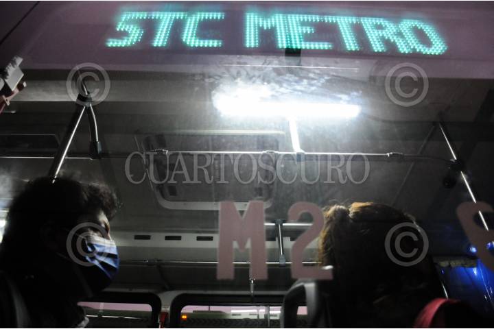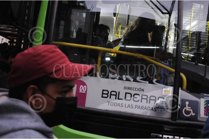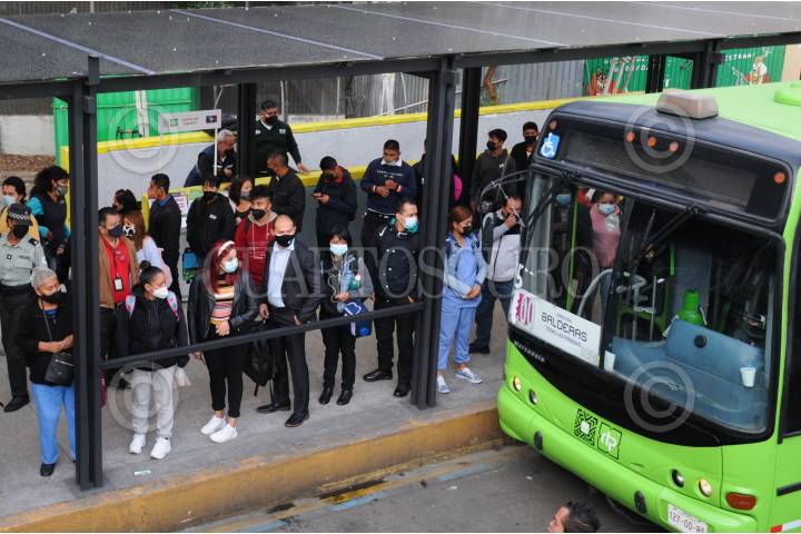 Una unidad de RTP llega al paradero para trasladar a los usuarios del metro hasta Balderas.