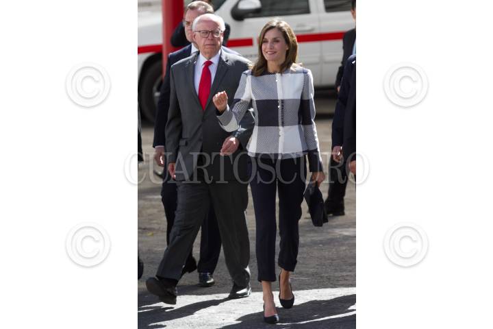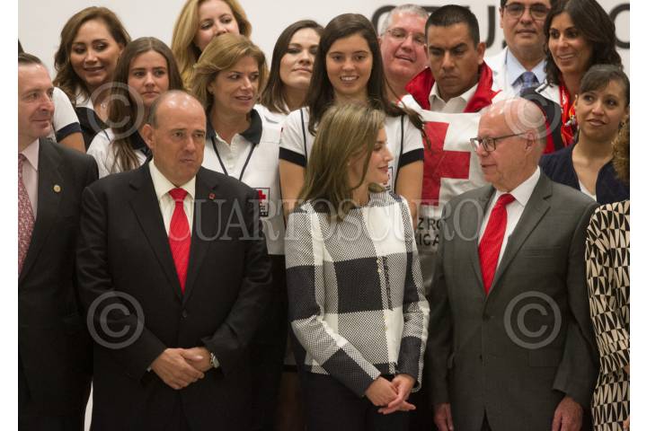 CIUDAD DE MÉXICO, 13NOVIEMBRE2017.- La Reina Letizia visitó la Cruz Roja en donde le mostraron el sistema de embalamiento de las cajas de ayuda que están enviando a los damnificados de los sismos de septiembre. En la imagen la Reina Española convers con José Narro, secretario de Salud. FOTO: MOISÉS PABLO /CUARTOSCURO.COM