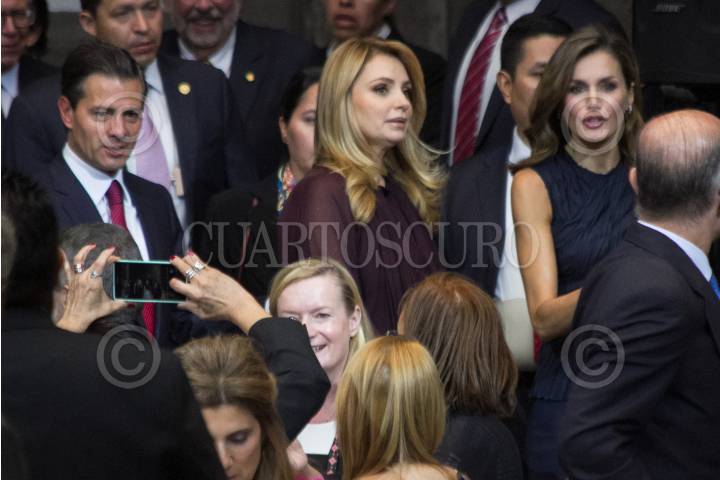 CIUDAD DE MÉXICO, 14NOVIEMBRE2017.- Enrique Peña Nieto, Presidente de México; la primera dama de México, Angélica Rivera y la Reina de España, Letizia Ortíz; durante la inauguración del World Cancer Leaders' Summit, foro mundial dedicado al intercambio de iniciativas entre países para el combate a esta enfermedad que cobra millones de vidas al año en el mundo. El evento se llevó acabo en el Palacio de Minería. FOTO: MOISÉS PABLO /CUARTOSCURO.COM
