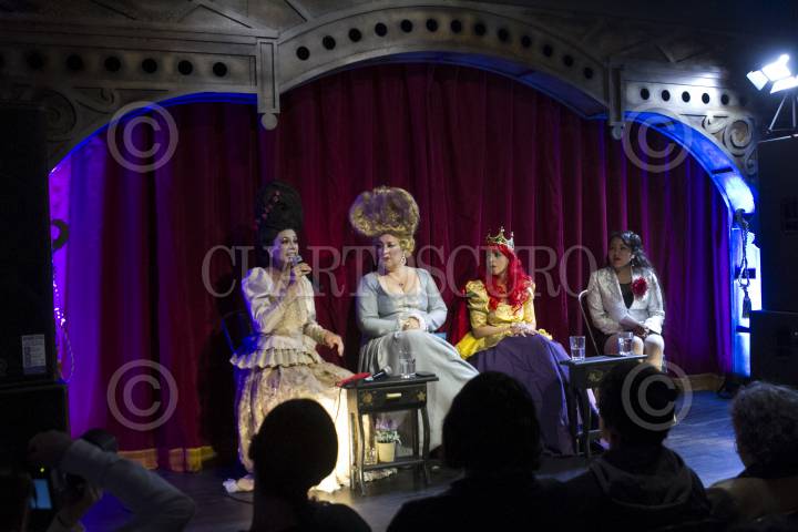 CIUDAD DE MÉXICO, 02AGOSTO2016.- Cecilia Sotres Y Ana Francisca Mor, integranteS de las Reinas Chulas; Luz Elena Arandas, directora general de Teatro Cabaret Reinas Chulas AC, y Asunción Pineda, coordinadora del Vicio Académico, ofrecieron una conferencia en donde dieron detalles del 14 Festival Internacional de Cabaret de la Ciudad de México en la conferencia de prensa dieron detalles, en el Teatro-Bar "La Sacristía". Este encuentro es la fiesta cabaretera por excelencia y se realizará del 18 de agosto al 03 de septiembre, e incluirá la participación de exponentes nacionales e internacionales del teatro cabaret, teniendo como corazón el legendario Teatro Bar El Vicio, además del Vicio Académico. La agenda de actividades incluye también talleres abiertos al público, enfocados al cabaret y su creación. FOTO: MOISÉS PABLO /CUARTOSCURO.COM