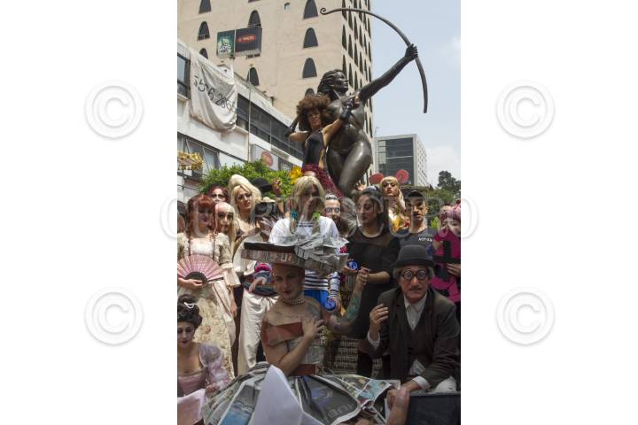 CIUDAD DE MÉXICO, 13MAYO2018.- Con la participacióm del actor Damián Alcázar, el músico Sergio Arau, y las Reinas Chulas, presentaron un espectáculo político cultural para hacer un llamado a la sociedad que vote en total libertad, y que no acepten ninguna dádiva a cambio de su voto este próximo 1 de julio, en donde se elegirá al Presidente de la República. Los actores viajan en una camioneta en la cual lleván una exposición fotográfica, con una bocina en medio del relajo y bromas intentan concientizar a las personas para que su voto sea libre, durante su gira por el zócalo. FOTO: MOISÉS PABLO /CUARTOSCURO.COM