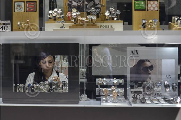 MÉXICO, D.F., 06OCTUBRE2014.- Una mujer acomoda relojes en una tienda de la calle Madero. FOTO: ADOLFO VLADIMIR /CUARTOSCURO.COM