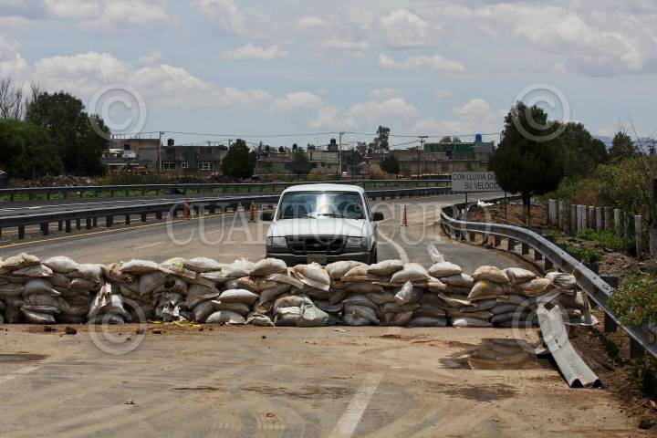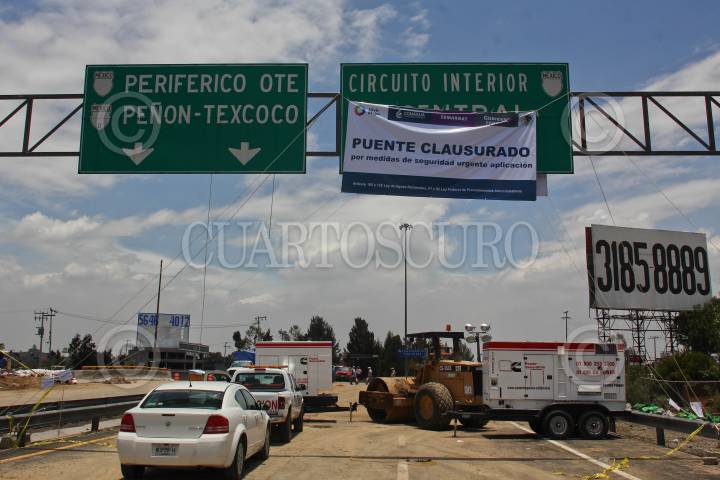 ECATEPEC, ESTADO DE MÉXICO., 06JULIO2011.- La Comisión Nacional del Agua clausuró y notificó a las autoridades estatales a demoler el puente ubicado sobre el río Los Remedios y Circuito Exterior Mexiquense, en el límite de Nezahualcóyotl y Ecatepec, debido a los hundimientos ocasionados a los costados del canal de aguas negras y que inundaron viviendas el pasado jueves . FOTO: SAÚL LÓPEZ/CUARTOSCURO.COM