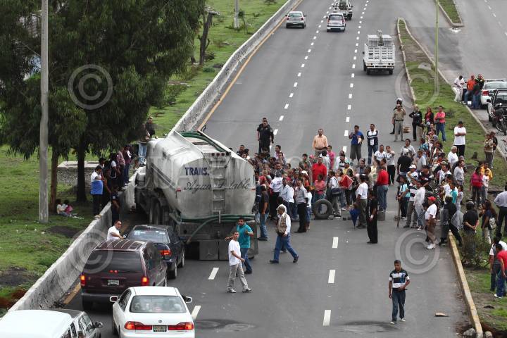 ECATEPEC, ESATDO DE MÉXICO, 11JULIO2011.- Habitantes de las colonias afectadas por el desbordamiento del canal de aguas negras “Rio de los remedios” bloquearon por mas de cuatro horas el cruce de Periférico y Avenida Central como protesta por no haber recibido la ayuda prometida por el gobierno estatal y federal para reparar sus viviendas y enceres domésticos. FOTO: SAÚL LÓPEZ/CUARTOSCURO.COM