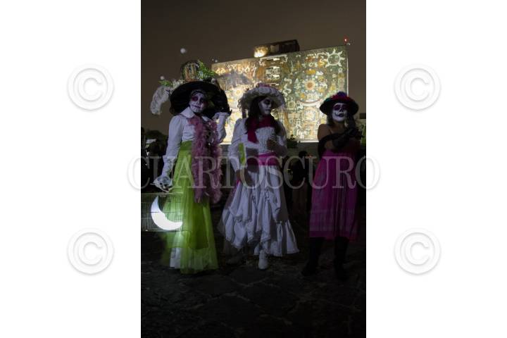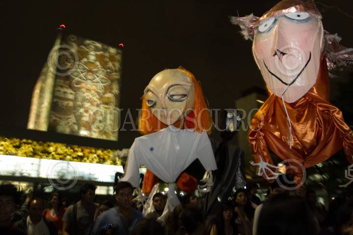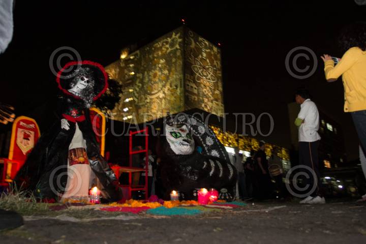 MÉXICO D.F., 29OCTUBRE2013.- Centenares de personas acuden a “Las Islas” de Ciudad Universitaria donde se monto la tradicional megaofrenda de la UNAM, que rinde homenaje a la pintora Remedios Varo. FOTO: GUILLERMO PEREA /CUARTOSCURO.COM