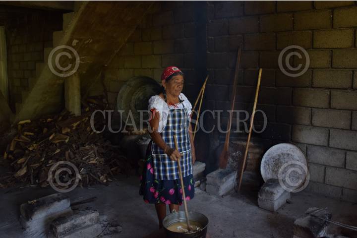 Esperanza Matías Briceño es la persona que prepara el atol; comentó que la bebida es preparada con gengibre, perico, aniz, pimienta, chile chocolate, flor de pericon y raíz de sentul.