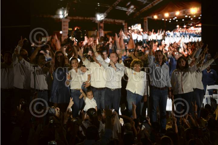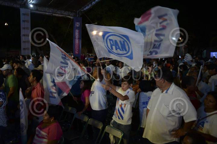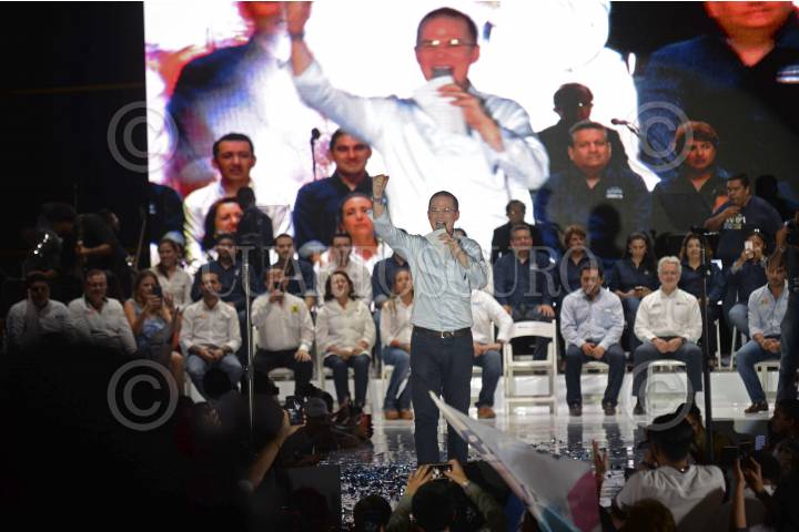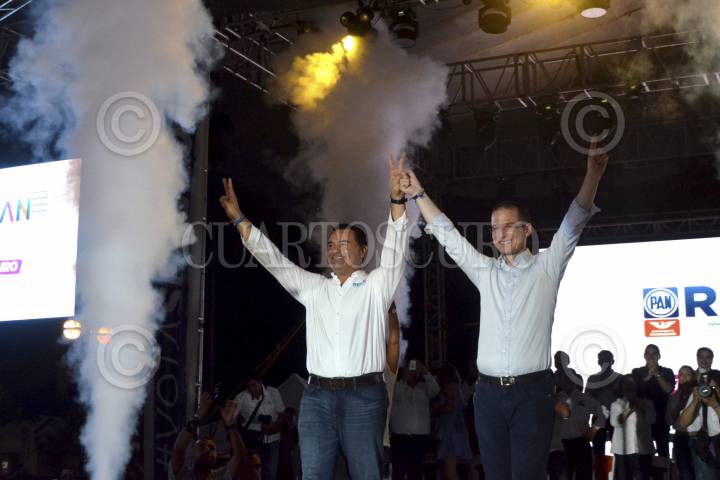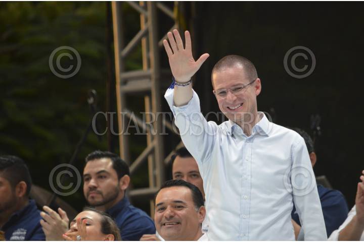 MÉRIDA, YUCATÁN, 25JUNIO2018.- El candidato a la presidencia de la república por el Partido Acción Nacional, Ricardo Anaya Cortés, acompañó al aspirante a la alcaldía de Mérida, Renán Barrera Concha, en su cierre de campaña este lunes en el Parque de la Mejorada del centro de la ciudad. Al evento asistieron unas dos mil personas. FOTO: OLEGARIO CABRERA /CUARTOSCURO.COM
