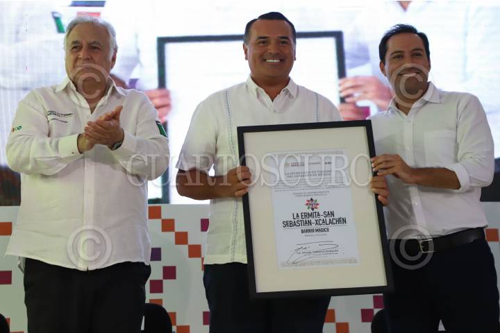 Miguel Torruco Marqués, Mauricio Vila Dosal, Renán Barrera Concha encabezaron la entrega del nombramiento de los primeros nuevos "Barrios Mágicos" a los barrios tradicionales de La Ermita, San Sebastián y Xkalachén.