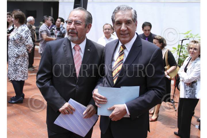 MÉXICO, D.F., 30MAYO2013.- Salvador Vega y León, Rector de la UAM Xochimilco; y René Avilés Fabila, escritor, periodista y catedrático; quien recibió un homenaje en la Universidad Autónoma Metropolitana Unidad Xochimilco (UAM-Xochimilco), con motivo de sus 50 años como creador literario. FOTO: ADOLFO VALTIERRA /CUARTOSCURO.COM