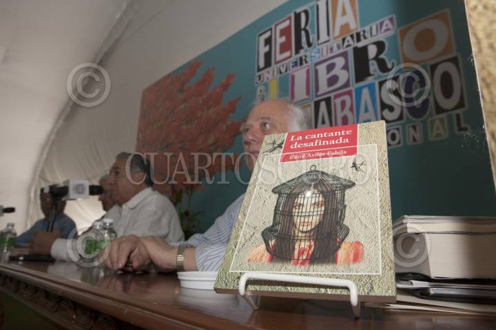 VILLAHERMOSA, TABASCO, 14NOVIEMBRE2014.- El reconocido escritor René Avilés Fabila presento su nueva obra literaria denominada “La cantante desafinada”, evento efectuado en la plaza universitaria de la UJAT en el marco del evento La Feria Universitaria del Libro Tabasco Internancional. El autor mexicano llego acompañado del primer actor y dramaturgo Carlos Bracho, quien robo cámara con su personalidad y a quien se refirió Avilés como “Desgraciado ya no te vuelvo a invitar a unas de mis presentaciones, te llevaste a mi gente”. FOTO: MARCO POLO GUZMÁN HERNÁNDEZ /CUARTOSCURO.COM