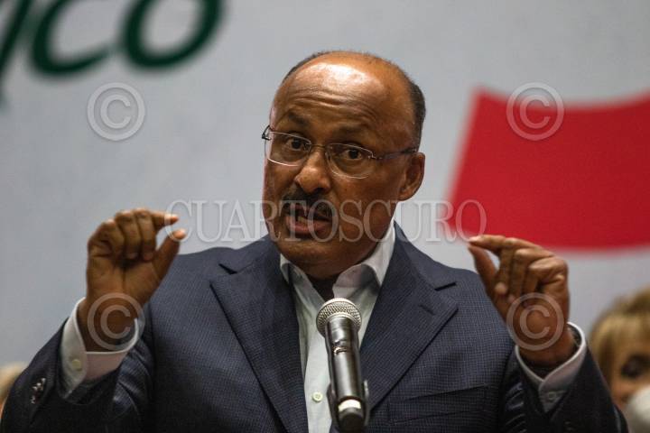 René Juárez Cisneros, coordinador de los diputados del PRI, durante las conclusiones de su reunión plenaria,