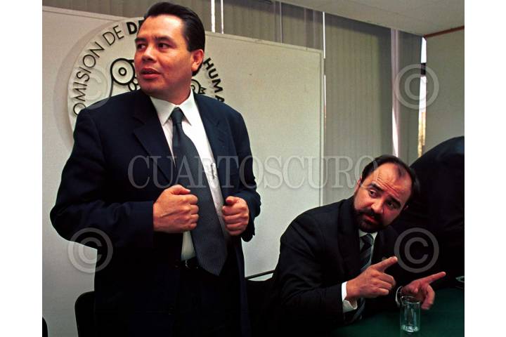El maestro Emilio Icaza, director general de Derechos Humanos del Distrito Federal, y René Arce Islas, jefe delegacional en Iztapalapa, firmaron el Convenio de Colaboración y Coordinación, con el propósito de impulsar la protección, defensa, vigilancia, educación, etc. de los derechos humanos, así como combatir la discriminación. FOTO: Sandra Perdomo/CUARTOSCURO.COM