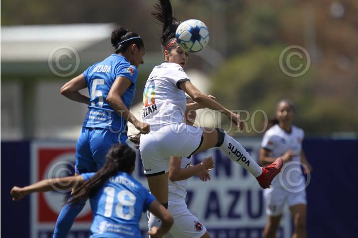 Ana Lozada de Cruz Azul y Renae Cuéllar de Tijuana durante el partido de fútbol correspondiente a la jornada 8 del torneo Clausura 2022 “Grita México” de la Liga MX Femenil entre Cruz Azul vs Tijuana en el Centro de Alto Rendimiento La Noria.