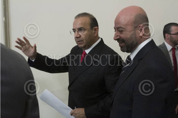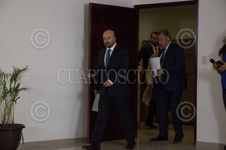CIUDAD DE MÉXICO, 18ABRIL2018.- Renato Sale Heredia, Comisionado Nacional de Seguridad, ofreció una conferencia de prensa en la sede de la Secretaría de Gobernación, fue abordado sobre el tema de la seguridad de los candidatos presidenciales en donde confirmó a regañadientes que José Antonio Meade y Margarita Zavala son los únicos que han solicitado seguridad federal, además de Cuauhtémoc Blanco, quien contiende por la gubernatura de Morelos. En la imagen lo acompañan Manelich Castilla Craviotto, comisionado general de la Policía Federal. FOTO: MOISÉS PABLO /CUARTOSCURO.COM