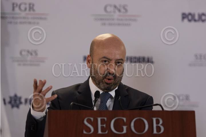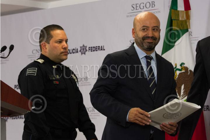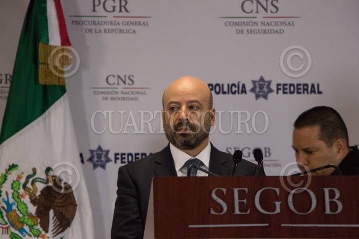 CIUDAD DE MÉXICO, 09MAYO2018.- Renato Sales Heredia, comisionado Nacional de Seguridad, en conferencia de prensa informó sobre la detención de la detención de Gerardo Mendoza Chávez, "El Gerardón”, líder del cártel de Colima, y presunto autor intelectual del asesinato del ex gobernador de Colima. FOTO: MARIO JASSO /CUARTOSCURO.COM