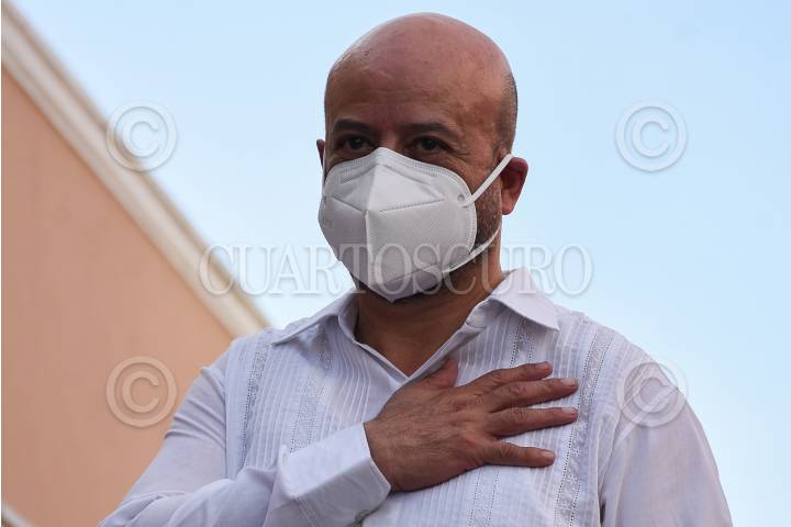 Mario Delgado durante la conferencia para denunciar por corrupción al candidato de Movimiento Ciudada para Campeche.