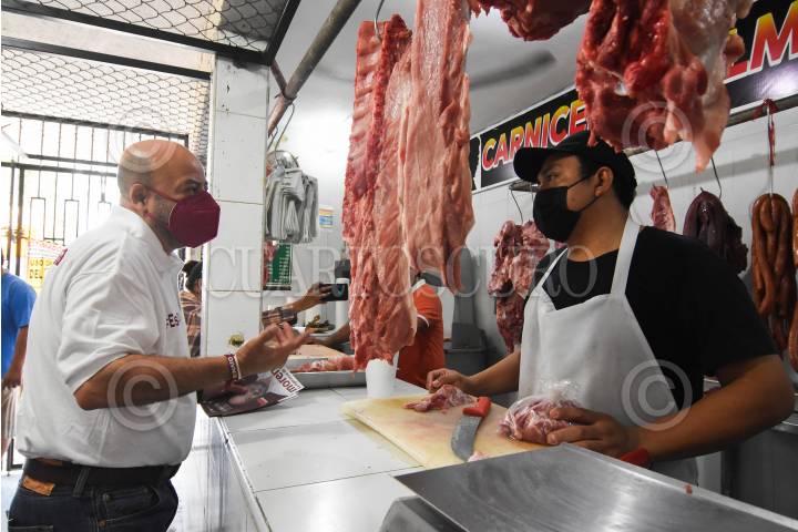 Renato Sales Heredia, candidato de Morena a la alcaldía de Campeche realizó un recorrido por el Mercado Venustiano Carranza.
