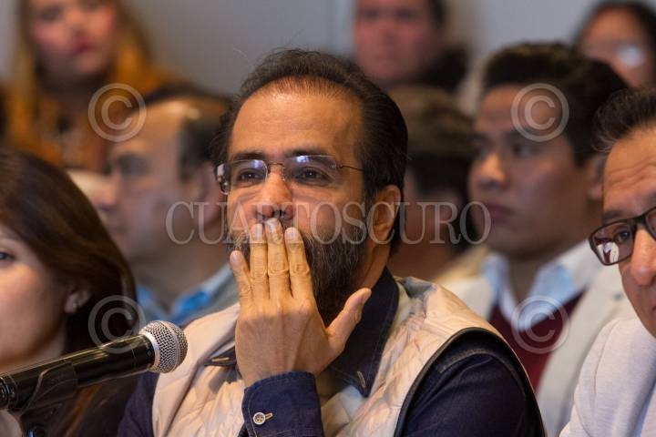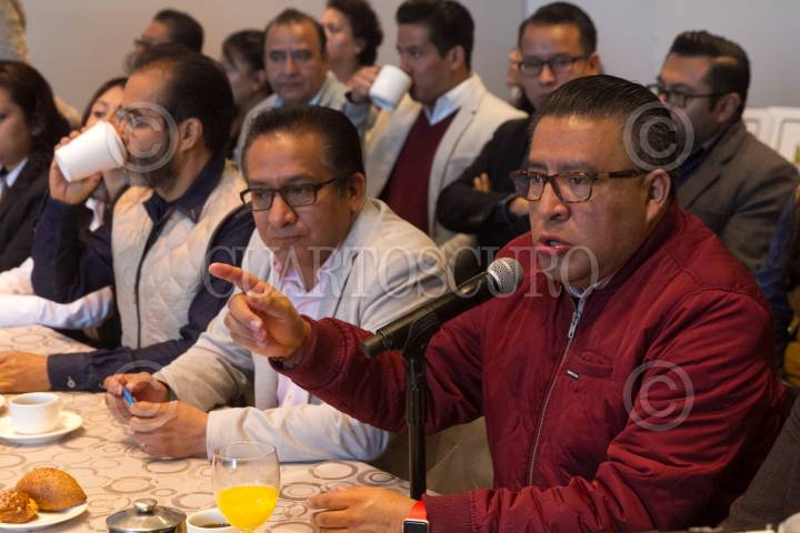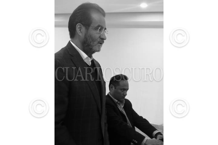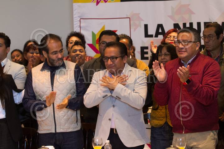 CIUDAD DE MÉXICO, 21ENERO2018.- Osmar León Aquino, dirigente del Movimiento Vida Digna, Horacio Duarte, líder de Morena en el Estado de México, durante el anuncio en el cual León Aquino dio a conocer que renuncia al PRD para sumarse a Morena y así poder ganarle al PRI en el próximo proceso electoral, señalo que con él se van 21 mil integrantes de su movimiento. FOTO: MOISÉS PABLO /CUARTOSCURO.COM