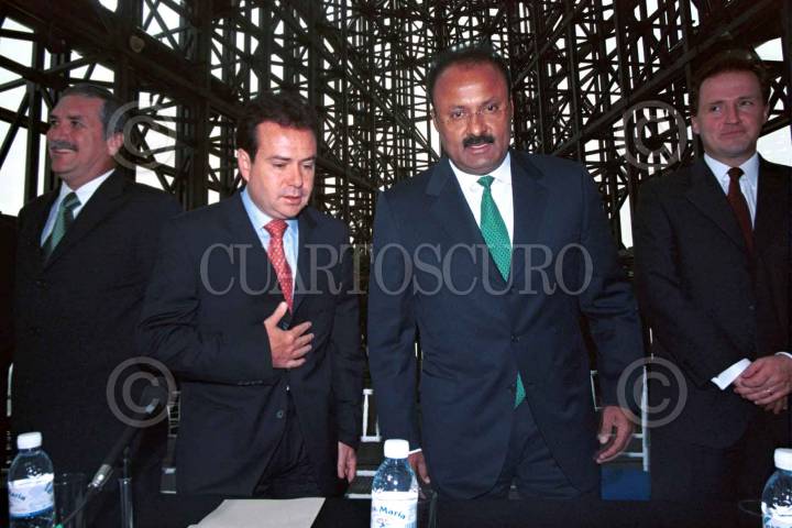 Los gobernadores Lázaro Cardenas Batel, René Juárez, Arturo Montiel, Andrés Manuel López Obrador, jefe de GDF, el presidente Vicente Fox Quesada, Leonel Cota Montaño, momentos antes de comenzar la ceremonia de la firman la convocatoria de la primera Convención Nacional Hacendaria. FOTO: Eunice Adorno/CUARTOSCURO.COM