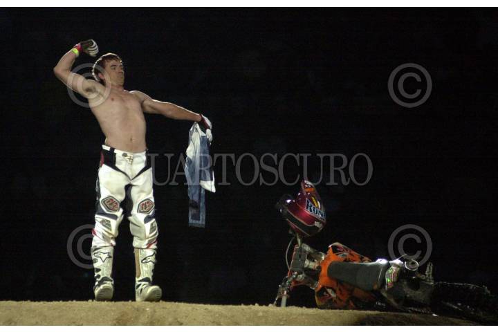 MEXICO, D.F. 23ABRIL2005.- Ronnie Renner de Estados Unidos se colocó en el primer sitio de la competencia Red Bull Cross Fighters en la plaza de toros México. FOTO: Iván Stephens/CUARTOSCURO.COM