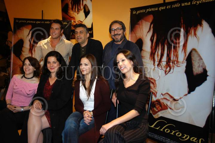 MEXDF14ABRIL2004.- Parte del elenco de la pelicula ¨Las lloronas¨ se presento para anunciar su extreno. Los actores Rodrigo Mejia, Enrique Renteria, Gaston Melo, Elizabeth Valdez, Tona Romero, Lorena Villareal directora y Jimena Rodriguez productora. FOTO: Germán Romero/CUARTOSCURO.COM