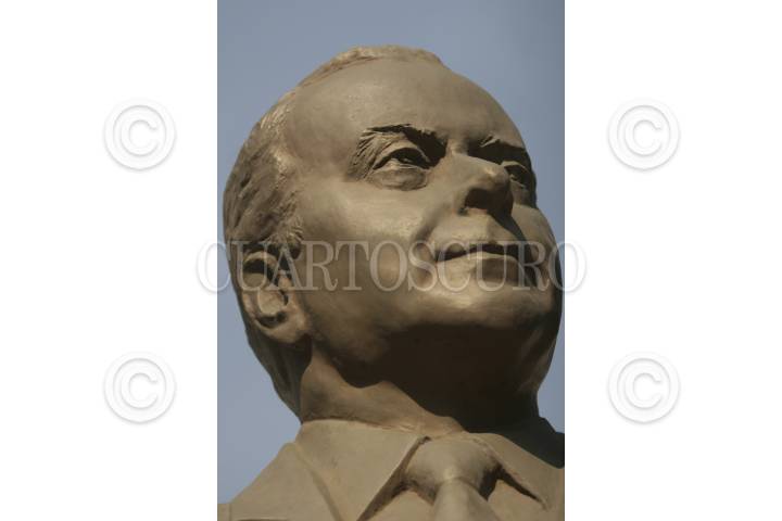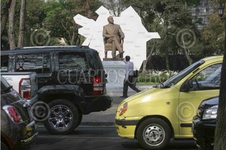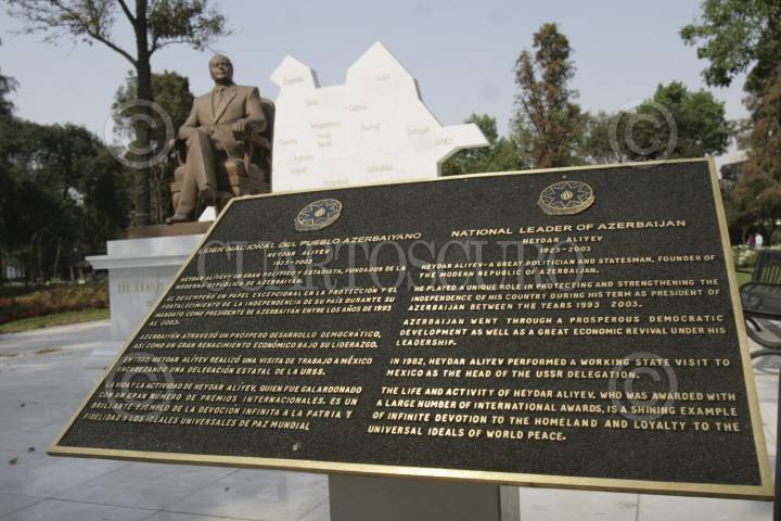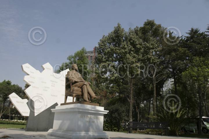 MÉXICO, D.F., 25ENERO2013.- La estatua del ex mandatario de Azerbaiyán, Heydar Aliyev, ubicada en el Parque de la Amistad, sobre Paseo de la Reforma en la primera sección del bosque de Chapultepec, será retirada a más tardar el domingo luego de que el gobierno capitalino dio la orden el miércoles pasado. La iniciativa de quitar la estatua comenzó cuando grupos defensores de los derechos humanos reconocieron al ex presidente como un dictador y manifestaron que el pueblo mexicano no debe honrarlo con un monumento. FOTO: DIEGO SIMÓN SÁNCHEZ /CUARTOSCURO.COM