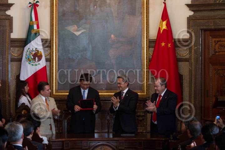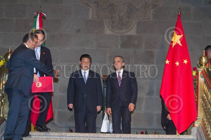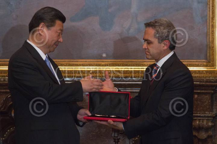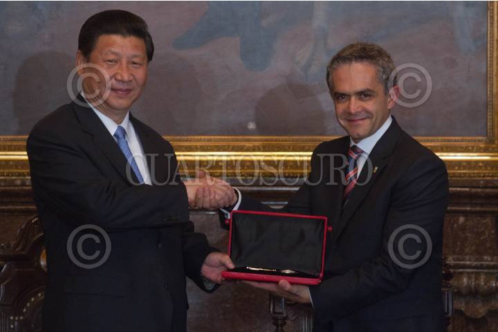 MÉXICO, D.F. 05JUNIO2013.-El presidente de la República Popular China, recibió las llaves de la ciudad por parte del Jefe de Gobierno del D.F., Miguel Angel Mancera en el Salón de Cabildo del Antiguo Palacio del Ayuntamiento. FOTO: JUAN PABLO ZAMORA /CUARTOSCURO.COM