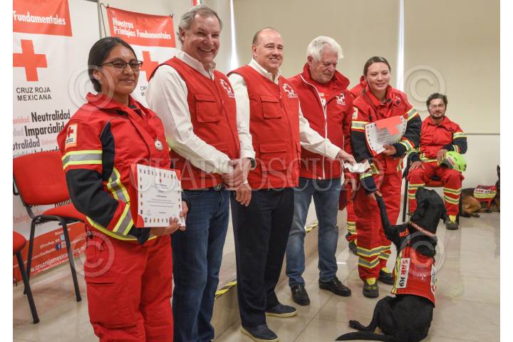 Rex integrante del equipo de Especialistas de Búsqueda y Rescate USAR de Cruz Roja Mexicana recibieron un reconocimiento por su labor en Turquía.