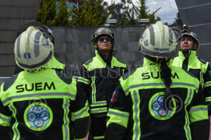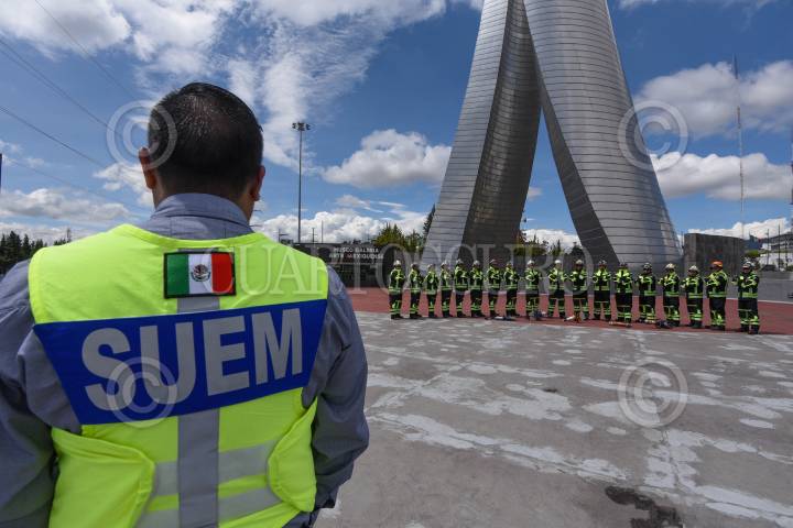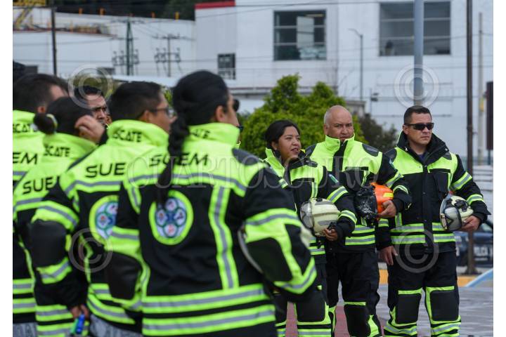 TOLUCA, ESTADO DE MÉXICO, 04OCTUBRE2023.- Rescatistas del Servicio de Urgencias del Estado de México SUEM estrenan traje estructural para Rescate Urbano, es la primera vez que cuentan con este uniforme desde su creación, quienes el próximo 11 de octubre cumplen 47 años de trabajo; son 20 trajes que constan de chamarra y pantalón. FOTO: CRISANTA ESPINOSA AGUILAR /CUARTOSCURO.COM