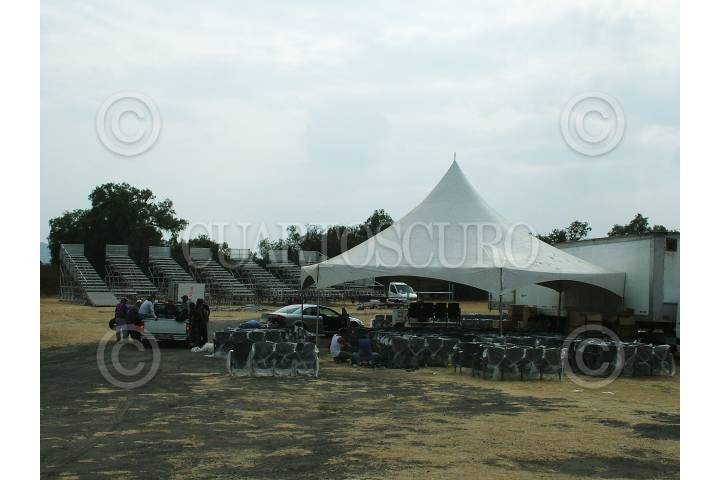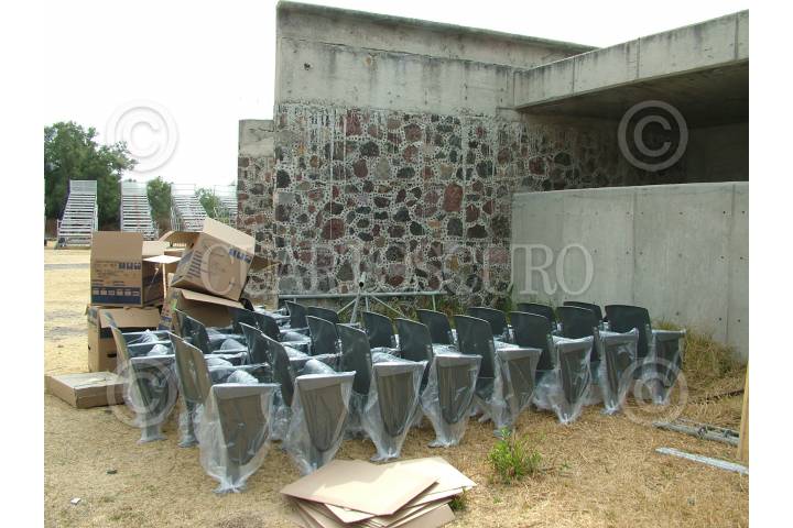 TEOTIHUACÁN, ESTADO DE MÉXICO, 16ENERO2009.- Estas serán las butacas que se colocarán en las gradas móviles que se colocarán para presenciar el espectáculo multimedia Resplandor Teotihuacano. FOTO: MARIO NULO/CUARTOSCURO.COM