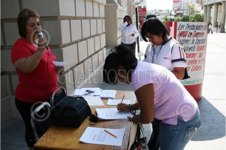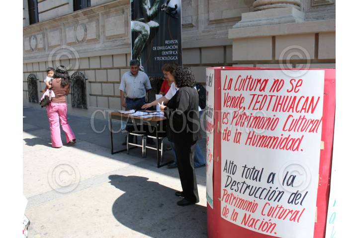 CHILPANCINGO, GUERRERO, 12FEBRERO2009.- Trabajadores del INAH-Guerrero realizaron una protesta afuera del Museo Regional, contra el proyecto de luz y sonido llamado "Resplandor Teotihuacano" que se pretende llevar a cabo en la zona arqueológica de Teotihuacan, con lo que se han presentado daños a las estructuras de las pirámides, y en general a la cultura de los mexicanos, destacaron. FOTO: OSCAR ALVARADO/CUARTOSCURO.COM