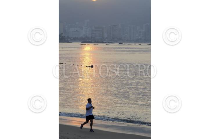 ACAPULCO, GUERRERO, 24FEBRERO2012.- Turistas realizan deporte en la playa de Santa Lucia corriendo para bajar esos kilitos de mas y tener muy buena salud. FOTO: BERNANDINO HERNÁNDEZ/CUARTOSCURO.COM