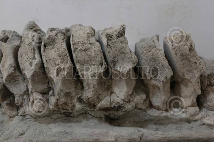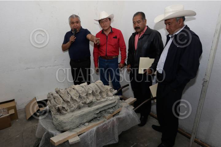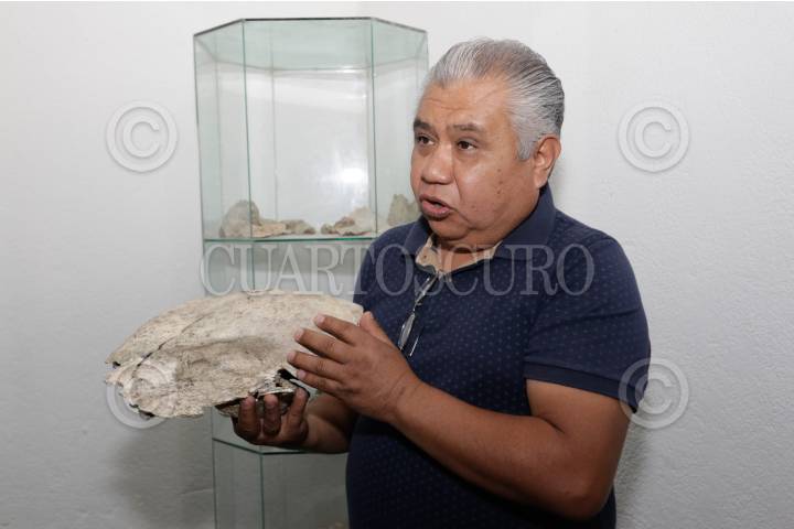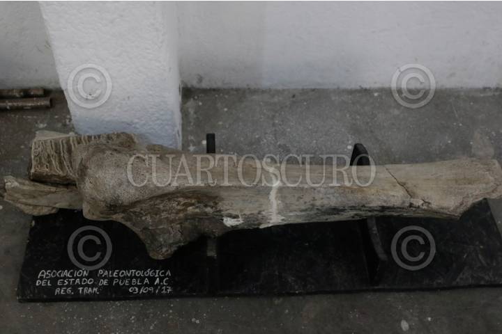 PUEBLA, PUEBLA, 09JUNIO2019.- Integrantes de la Asociación Civil Tepalcayotl localizaron restos de fósiles presuntamente de mamut de la especie Columbi, vestigios de camello, colmillo de un perro lobo gigante y herramientas punta flecha, con más de 14 mil años de antigüedad. Los hallazgos se encuentran en un cuarto habilitado como museo por las autoridades de la Junta auxiliar de San Francisco Totimehuacán y bajo el resguardo de la asociación civil. Isaac Chetla Muñoz, presidente de la junta auxiliar del poblado, pidió a Claudia Rivero Vivanco, presidenta municipal, el apoyo de una consolidación de un museo de sitio. FOTO: MIREYA NOVO /CUARTOSCURO.COM