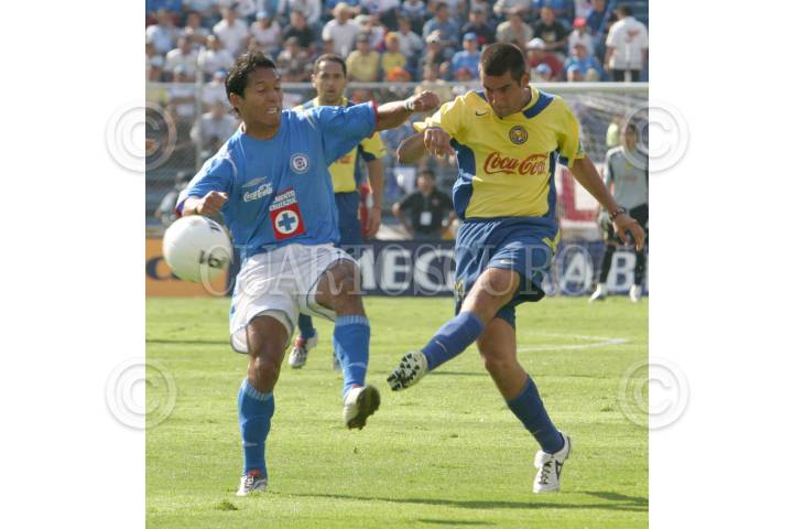 MEXICO, D.F. 22MAYO2005.- Javier Restrepo del Cruz Azul se diputa un balón conun jugador del América durante su encuentro en el estadio Azul. FOTO: Nelly Salas/CUARTOSCURO.COM