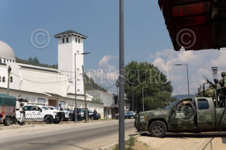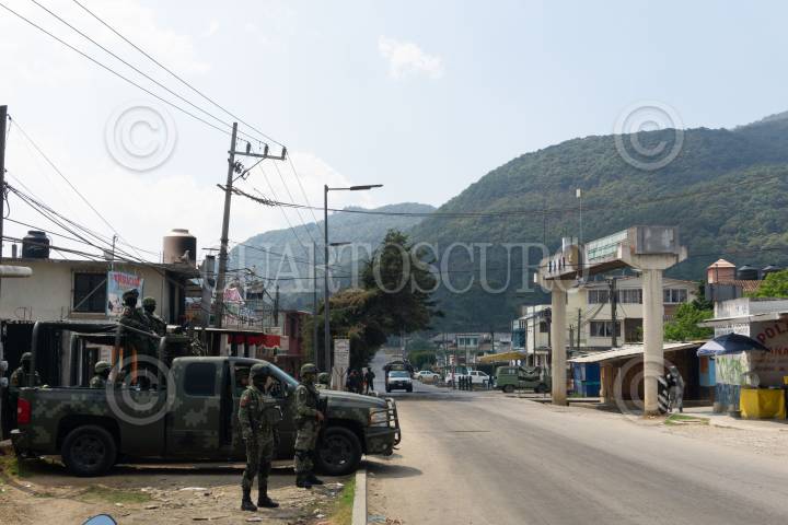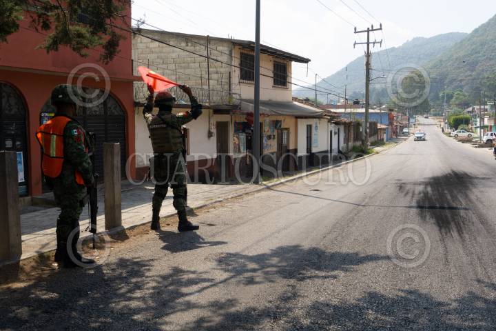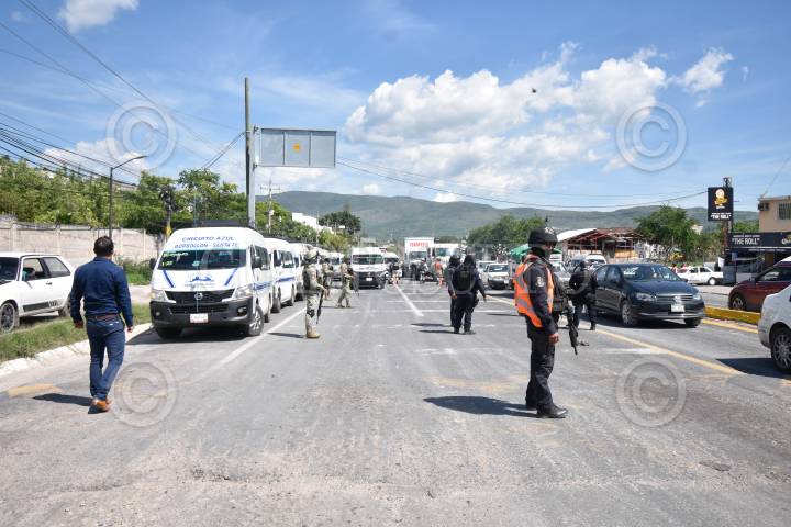 Retenes de Policia Estatal y Ejército Mexicano se observaron en la principales entradas de San Cristóbal de las Casas tras los hechos violentos del día de ayer.