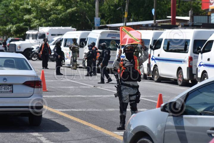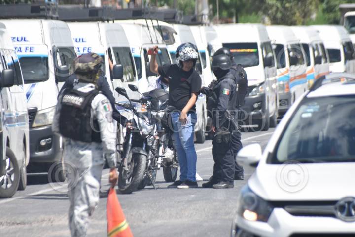 Luego de los hechos violentos suscitados en la capital del estado y que cobrara la vida de 3 choferes de transporte público, agentes del Ejercito Mexicano, Guardia Nacional, Policía y Transito estatal, desplegaron un operativo de seguridad y revisión en el bulevar Chilpancingo-Petaquillas.