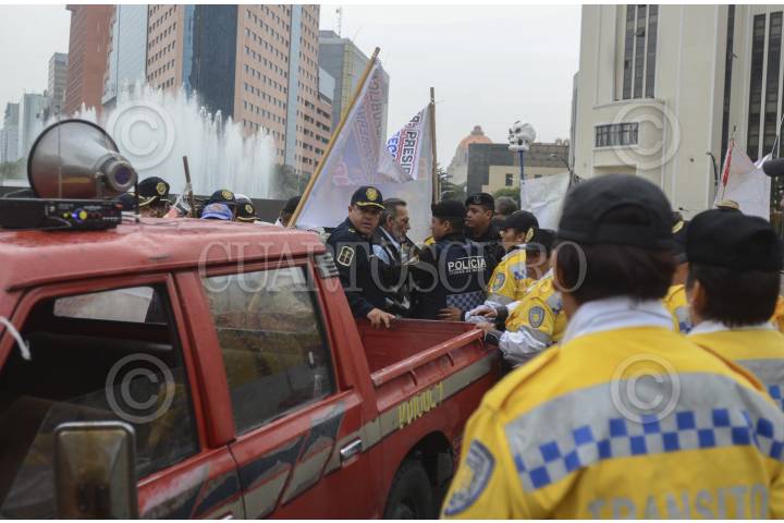 MÉXICO, D.F., 29ABRIL2015.- Retiro de manifestantes, ex trabajadores de talleres gráficos, quienes bloquearon la avenida Reforma y avenida Juárez. FOTO: ARMANDO MONROY /CUARTOSCURO.COM