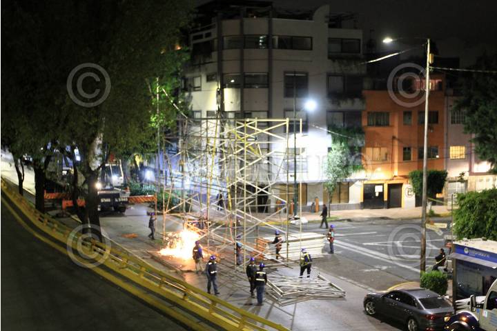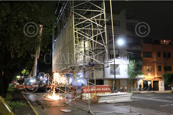 CIUDAD DE MÉXICO, 24OCTUBRE2019.- Autoridades de Miguel Hidalgo retiraron un anuncio espectacular de más de 30 metros de altura, en la esquina de Circuito Interior José Vasconcelos y la calle Juan de la Barrera en la colonia San Miguel Chapultepec, por violar los estándares de seguridad de Protección Civil. FOTO: LUIS CARBAYO /CUARTOSCURO.COM