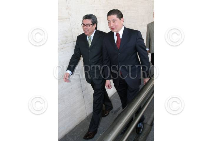 MÉXICO, D.F., 15FEBRERO2008.- Los diputados del PRI, Samuel Aguilar y Edmundo Reveles, ofrecieron conferencia de prensa en la sala de prensa en la Cámara de Diputados. FOTO: GUILLERMO PEREA/CUARTOSCURO.COM