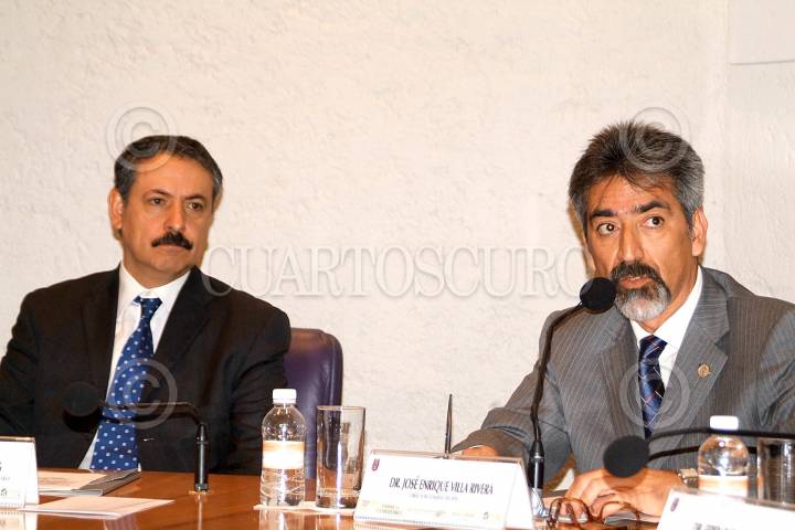 MÉXICO, D.F., 03OCTUBRE2006.- El director general del Instituto Politécnico Nacional, Enrique Villa Rivera, y el presidente municipal de Naucalpan de Juárez, José Luis Durán Reveles, firmaron un convenio de colaboración a través del cual, la casa de estudios brindará asesoría técnica en materia ambiental, de transporte, para la incubación de empresas de base tecnológica, y la realización de estudios de funcionalidad y operabilidad del parque vehicular destinado a la seguridad pública de ese ayuntamiento del Estado de México. FOTO: IPN/CUARTOSCURO.COM