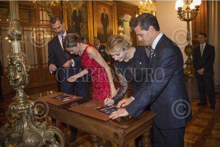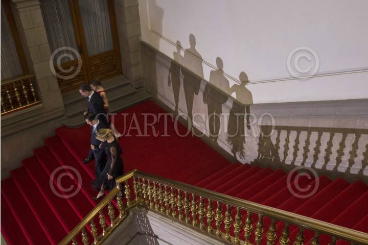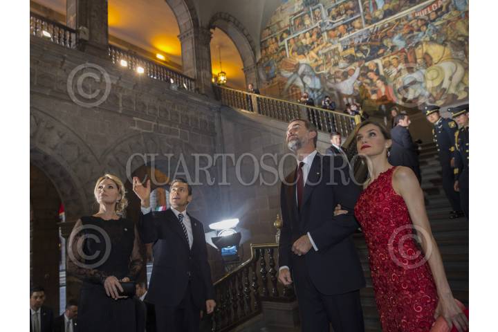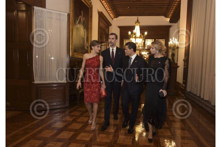 México, D.F., 29 JUNIO2015.- El Presidente Enrique Peña Nieto, acompañado de su esposa, Angélica Rivera, ofrecieron hoy una cena en honor a los Reyes de España, Felipe VI y Letizia, en el Palacio Nacional. Durante la ceremonia, el Ejecutivo mencionó que “España y México comparten una historia que se entrelaza, una identidad común, inquebrantables lazos fraternos". FOTO: PRESIDENCIA /CUARTOSCURO.COM