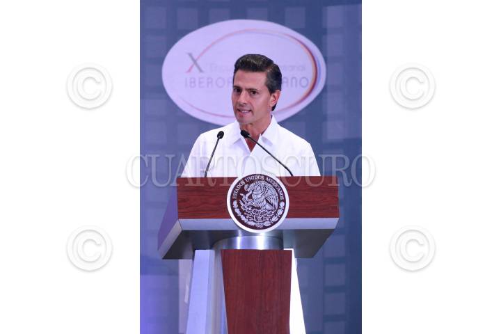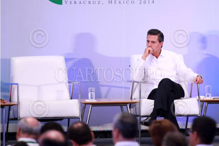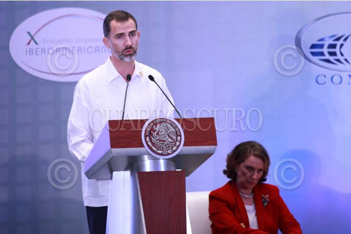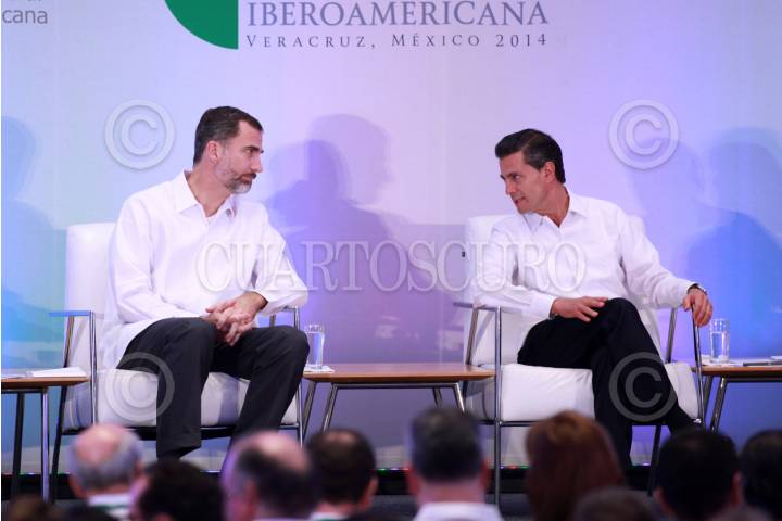 BOCA DEL RÍO, VERACRUZ, 07DICIEMBRE2014.- El presidente de la República, Enrique Peña Nieto, acompañado del Rey de España, Felipe VI, clausuraron el Encuentro Empresarial Iberoamericano que se realizó en la ciudad de Boca del Río en el marco de la Cumbre Iberoamericana de Jefes de Estado. El mandatario nacional externo su pésame a los familiares del normalista Alexander Mora. FOTO: FÉLIX MÁRQUEZ /CUARTOSCURO.COM