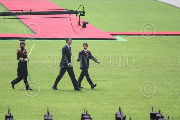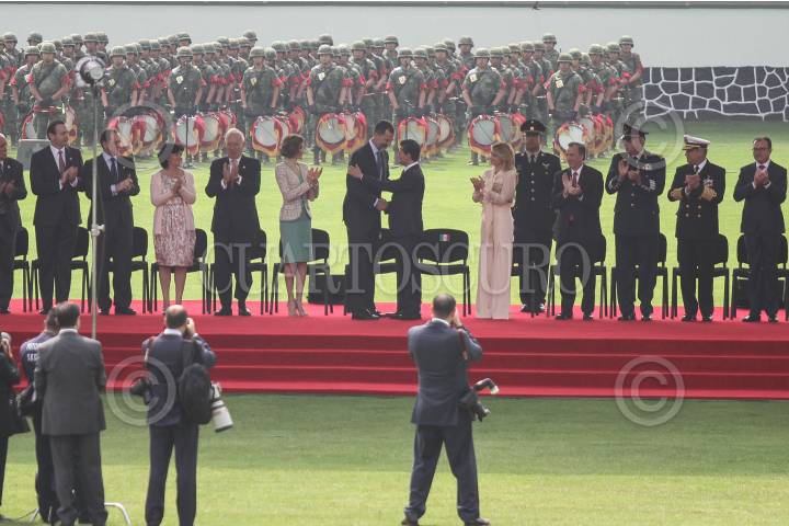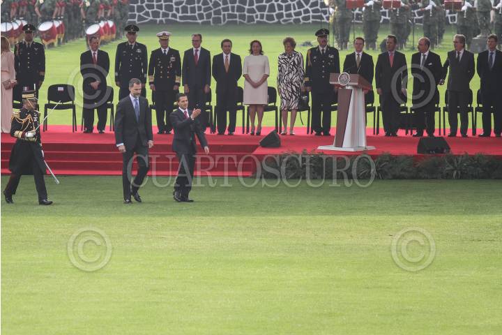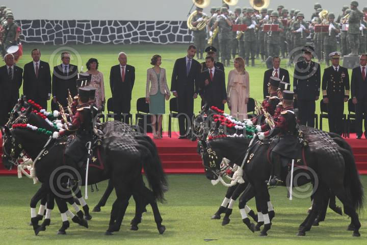 MÉXICO, D.F., 29JUNIO15.- Enrique Peña Nieto, presidente de México y su esposa Angélica Rivera, dieron la bienvenida en ceremonia de honor en el Campo Marte, a Felipe VI y Letizia, reyes de España, durante su visita oficial al país. FOTO: ADOLFO VLADIMIR / CUARTOSCURO.COM