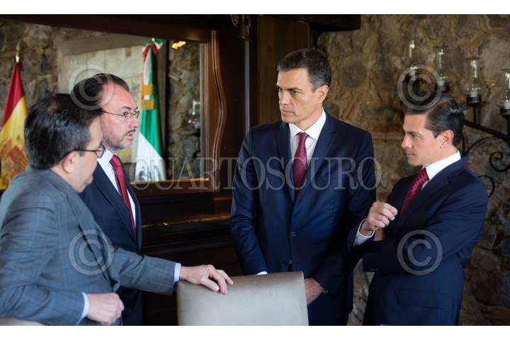 ANTIGUA, GUATEMALA, 15NOVIEMBRE2018.- En el marco de sus actividades en la XXVI Cumbre Iberoamericana, el Presidente Enrique Peña Nieto se reunió hoy con Felipe VI, Rey de España, y con el Presidente del Gobierno español, Pedro Sánchez, con quienes dialogó sobre temas de interés común para ambas naciones y sobre la agenda de la Cumbre Iberoamericana. Les acompañaron los secretarios de Relaciones Exteriores, Luis Videgaray, y de Economía, Ildefonso Guajardo. FOTO: PRESIDENCIA /CUARTOSCURO.COM