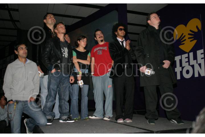 MEXICO, D.F. 29SEPTIEMBRE2005.- Reyli, Natalia y la Forquetina, Sin Bandera, y Kalimba interpretan el himno oficial del Teletón "Tu eres yo" Teletón 2005. FOTO: Nelly Salas/CUARTOSCURO.COM