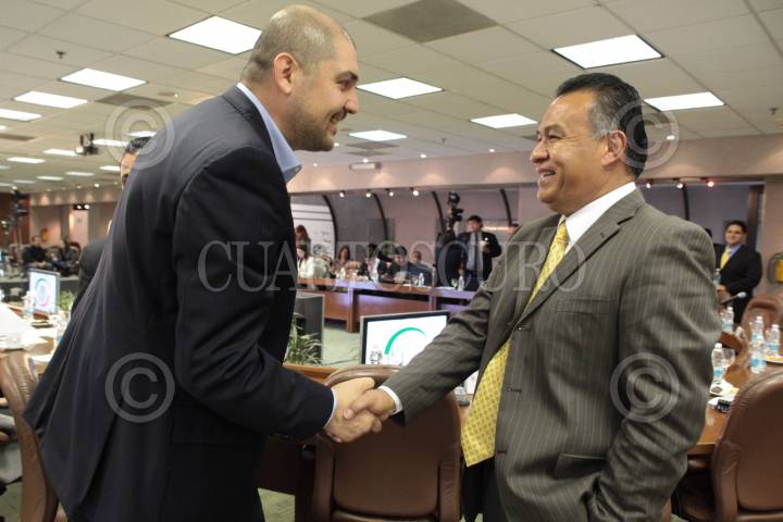 MÉXICO, D.F., 16FEBRERO2011.- El senador Carlos Sotelo, presidente de la Comisión de Radio, Televisión y Cinematografía, saludó a Reyli Barba, antes del inicio de la Reunión del Grupo de Trabajo para dar Seguimiento al Proceso de Negociaciones del Acuerdo Comercial Antifalsificación con ciudadanos y representantes de la Sociedad Civil. FOTO: CUARTOSCURO.COM