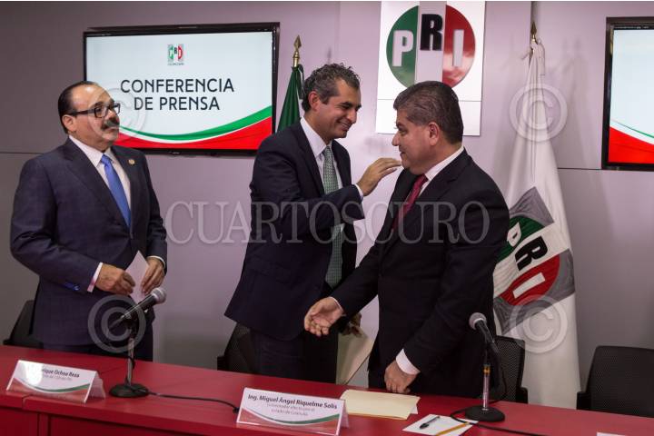 CIUDAD DE MÉXICO, 25JULIO2017.- Jorge Carlos Ramírez Marín, representante del PRI antel el INE, Enrique Ochoa Reza, presidente nacional del PRI, y Miguel Ángel Riquelme, gobernador electo de Coahuila, en conferencia de prensa donde dieron a conocer que el INE se equivocó al acusar a Miguel Ángel Riquelme de haberse sobrepasado en los gastos de su campaña electoral. FOTO: TERCERO DÍAZ /CUARTOSCURO.COM