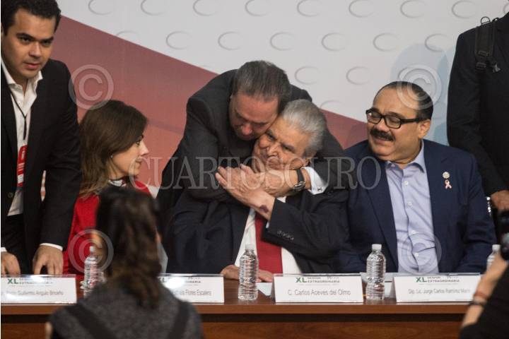 CIUDAD DE MÉXICO, 11OCTUBRE2017.- Emilio Gamboa Patrón, de la senador de la República, Carlos Aceves del Olmo, lider de la CTM, y Jorge Carlos Ramírez Marín, presidente de la mesa directiva en la Cámara de Diputados, durante la XL Sesión Extraordinaria del Consejo Político en el CEN del PRI, FOTO: TERCERO DÍAZ /CUARTOSCURO.COM